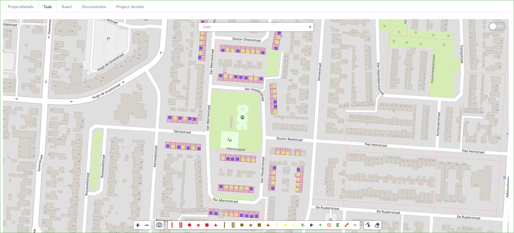 Teken taken direct in op de kaart, wijs ze toe aan medewerkers of teams, en bepaal deadlines of taakdoelen.